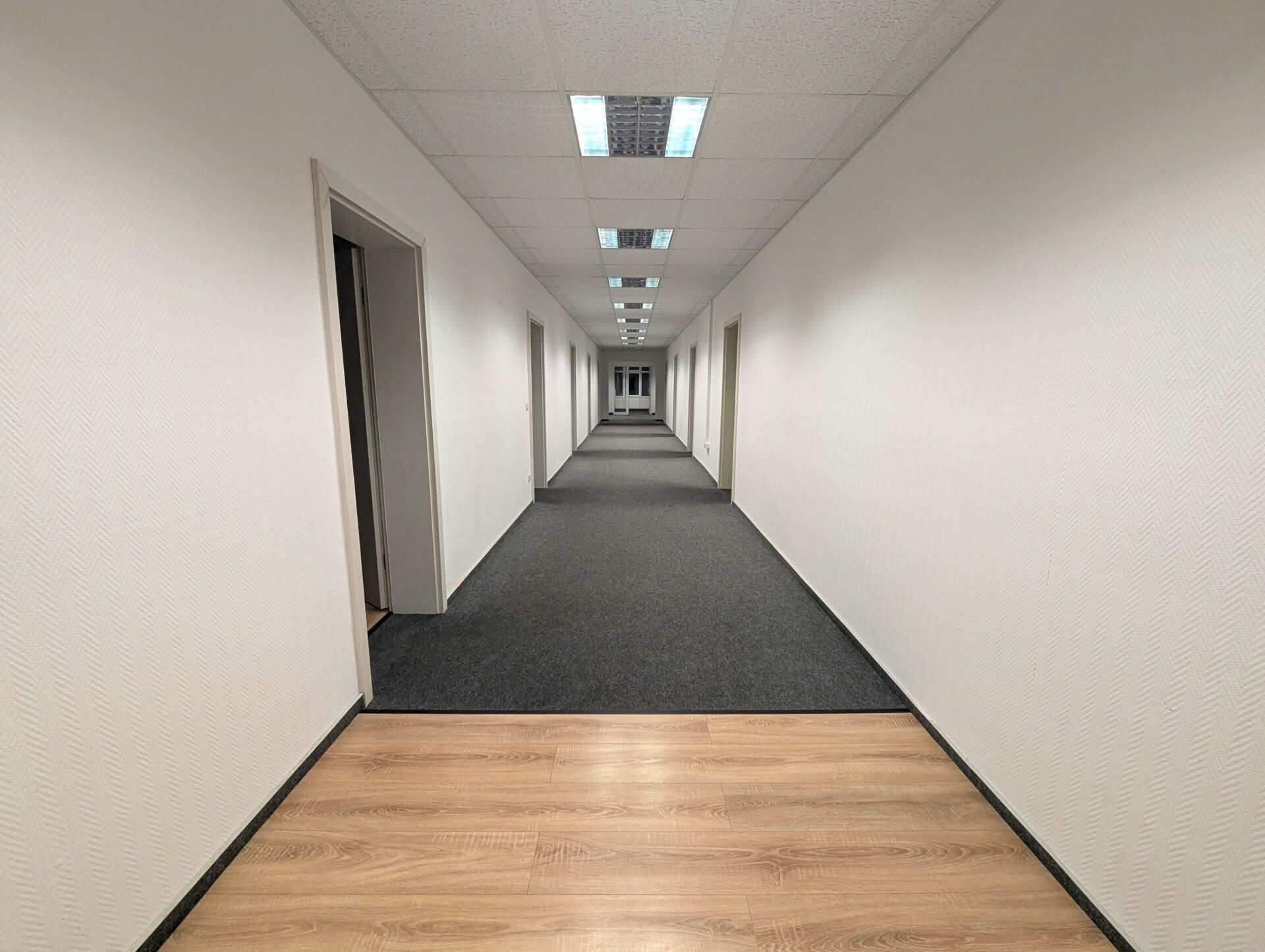 Die Büroflächen zeichnen sich durch einen funktionalen Ausbaustandard aus. Helle Büroräume, Teilbereiche (3. OG und 4. OG) sind klimatisiert, repräsentative Foyer- und Verkehrsflächen sowie Personenaufzüge mit Panoramablick bieten ideale Voraussetzungen für Unternehmen, Schulungszentren oder Verwaltungsstandorte. Außerdem verfügt das Gebäude über ein zweites Treppenhaus, welches als weiterer Fluchtweg dient. Weiterhin verfügen die Häuser über Teeküchen sowie Damen- & Herren-WCs auf jeder Etage, Cat. 7 Verkabelung, Fensterbankkabelkanäle, Sonnenschutzfolierungen, abgehängten Decken mit bildschirmarbeitsplatzgerechter Beleuchtung und modernen Laminatboden bzw. teilweise Teppichböden. Ein großzügiges Stellplatzangebot mit insgesamt über 70 Stück stehen den Mitarbeitern und Kunden zur Verfügung und rundet das Angebot ab. Die Beheizung erfolgt über Öl- bzw. Gaszentralheizungen.